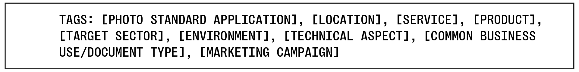 Consistently tagging files, especially adding business friendly keywords (and distributing a defined list) to the metadata of photos, allows searchers to quickly drill down to what they need in a rich library.